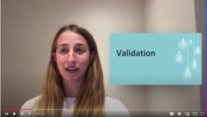 La compétence de la validation est requise dans toutes les relations. Il s’agit de trouver la parcelle de vérité dans la perspective d’autrui ou dans une situation, de vérifier les faits d’une situation et ensuite d’exprimer que les émotions, pensées et actions de l’autre sont compréhensibles, compte tenu ce du contexte passé et présent. Par contre, il ne faut pas valider ce qui est invalide (par exemple, on peut dire qu’on comprend les émotions, les pensées de l’autre, qu’on accepte qui il est, les faits de la situation, qu’on reconnait la souffrance de l’autre et qu’on n’est pas d’accord avec certains comportements adoptés). La validation améliore les relations interpersonnelles car elle démontre qu’on écoute et qu’on cherche à comprendre, elle diminue la pression de démontrer qu’on a raison, elle permet de rencontrer de façon utile la réaction négative de notre interlocuteur, sa colère. Elle permet de résoudre des problèmes, de rapprocher les gens, d’offrir du soutien. Également, être invalidé peut être très douloureux. Lorsque cela survient, la pratiquer de l’auto-validation peut nous permettre de prendre soin de nous.