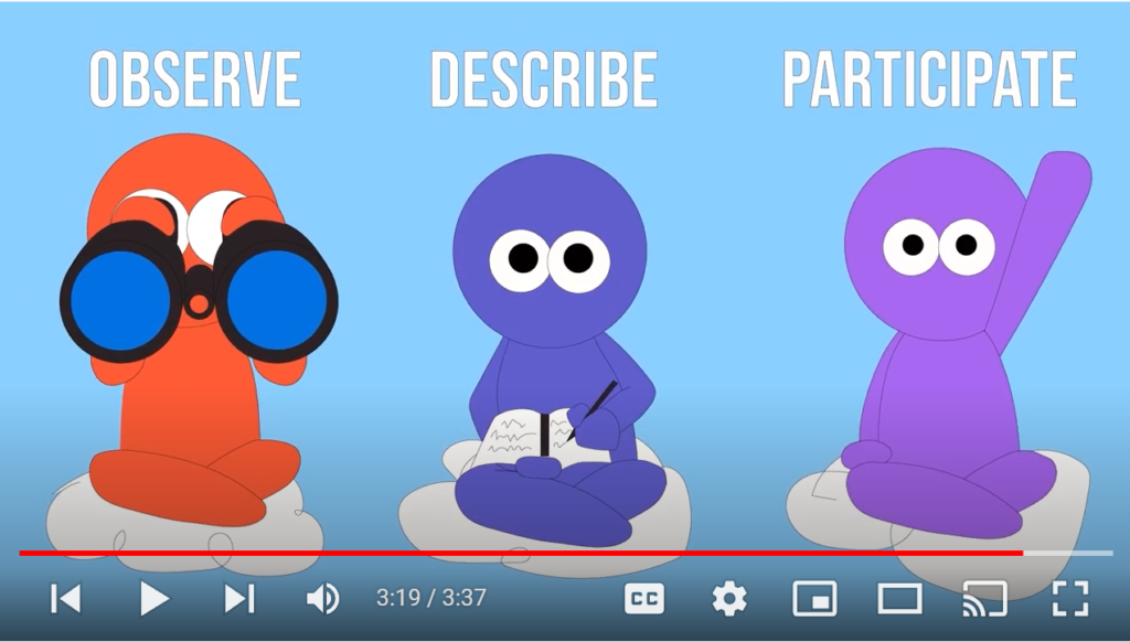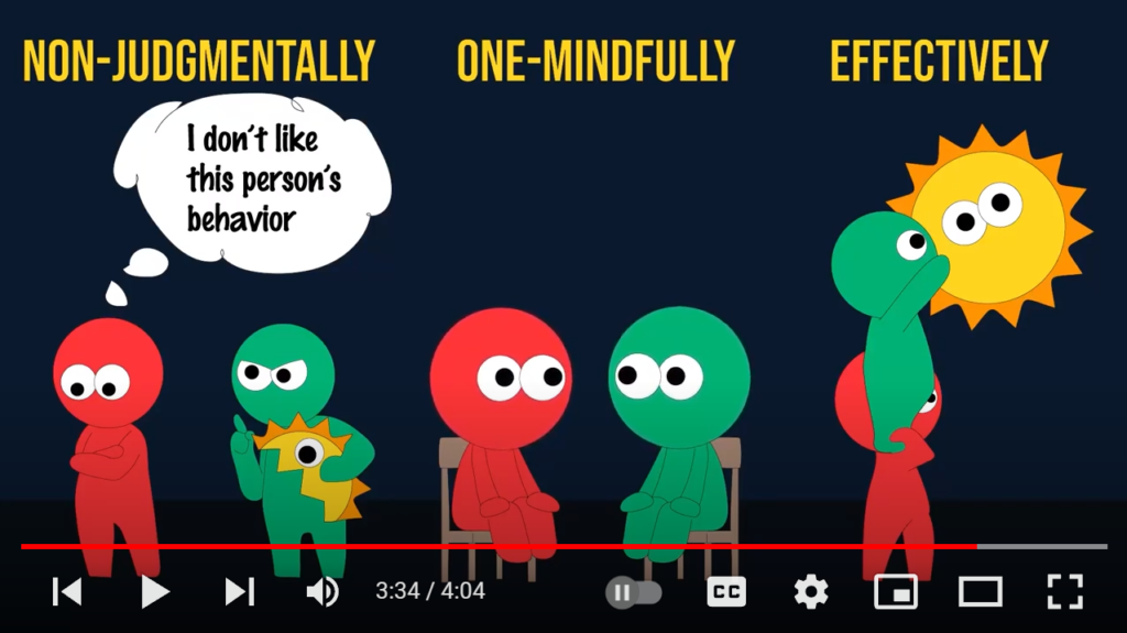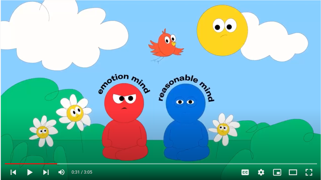 Découvrez  les compétences sur YouTube(telles qu’enseignées dans les groupes d’entraînement aux compétences): cliquez ici pour la description des compétences et ici pour les vidéos de méditations esprit sage, observer, décrire, participer, non jugement